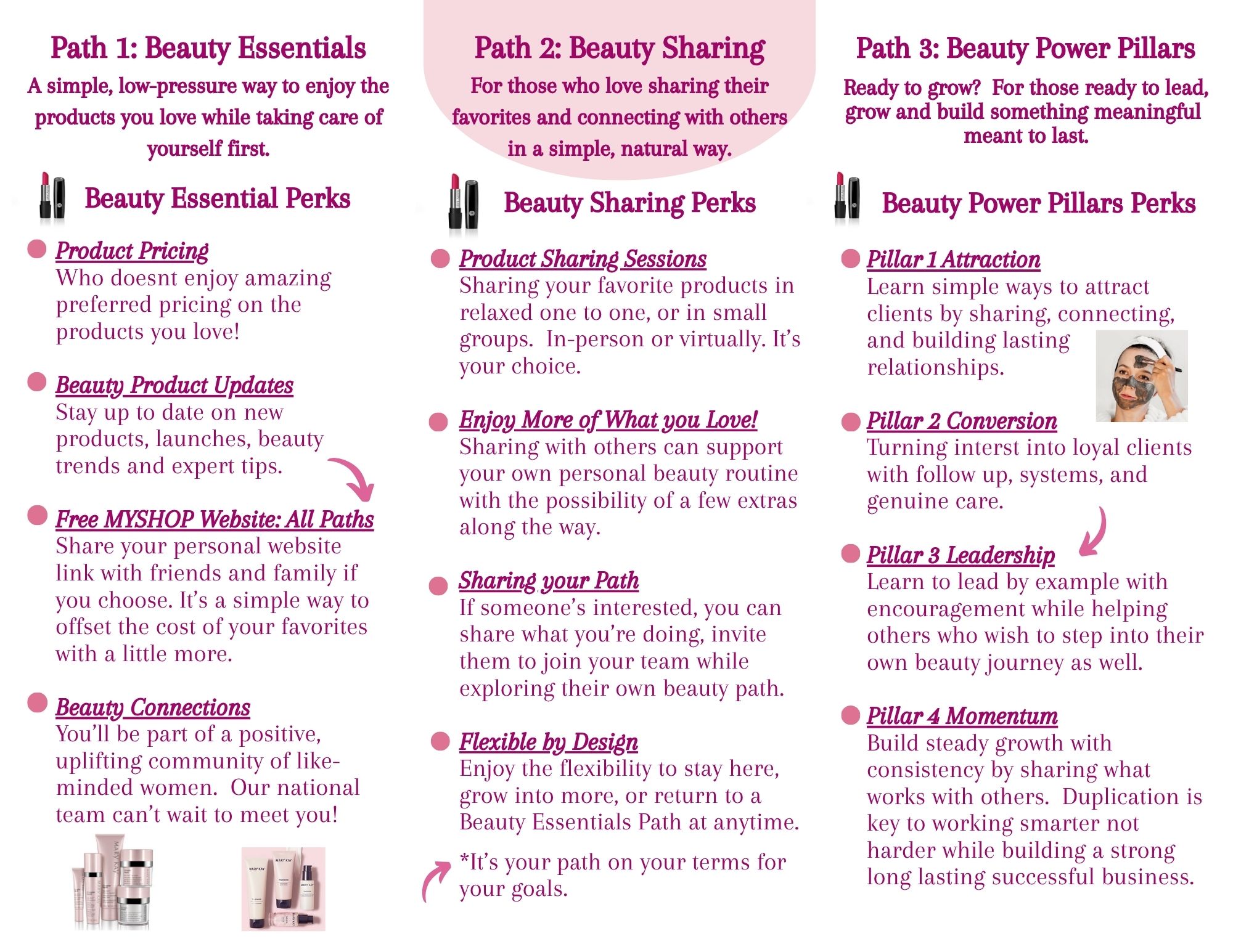 is a flexible way to enjoy your products, share what you love, and if you choose- grow into a beauty business!